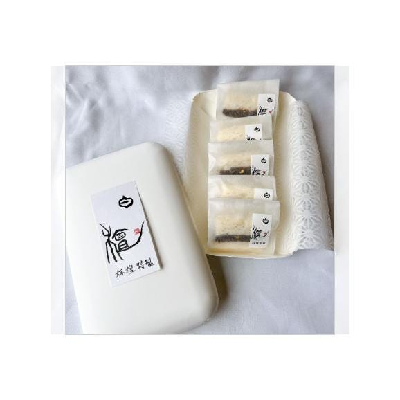 また、器にも拘り、「白檀」の文字は女性書道家・松下琴舟さんの書によるもので、質の良い手土産として見た目にもお楽しみいただけます。