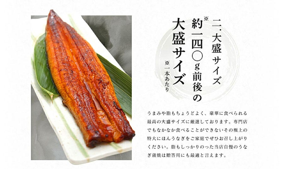 ![特大にほんうなぎ 蒲焼き 約280g(約140g×2尾)[台湾産] (タレ・山椒付)【鰻/ウナギ/ギフト/プレゼント/母の日/土用の丑の日/送料無料/ますよね】02](https://rimage.gnst.jp/gurusuguri.com/public/rszimg/products/ma/masuyone/2663309/main2_t-unagi-140-2_4_578_578.jpg?20260410171249)