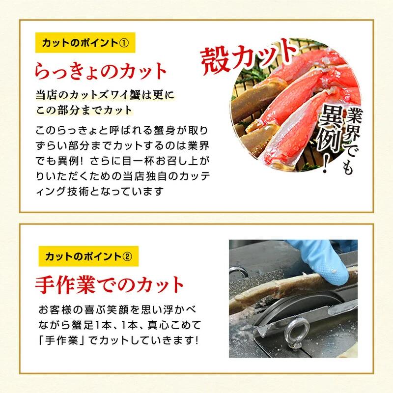 殻を手作業で独自Wカットで食べやすくカットし、ボイルしてあります。
