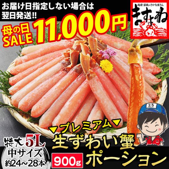 《母の日セール》【特大5L/生棒肉100%】お刺身OK プレミアム 生ずわい蟹 棒ポーション 900g(中サイズ:約24~28本)【蟹しゃぶ/蟹刺し/焼蟹/母の日/ギフト/送料無料/ますよね】