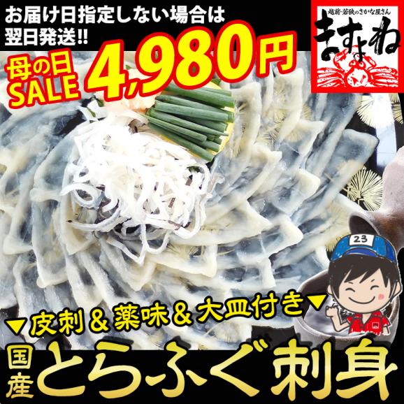 《母の日セール》国産とらふぐ使用 高級 とらふぐ刺身セット【ふぐ刺し/フグ刺し/てっさ/トラフグ/フグ/河豚/お刺身/母の日/ギフト/送料無料/ますよね】