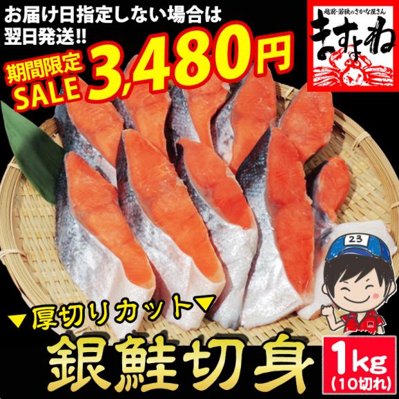 《期間限定セール》訳あり 厚切り 銀鮭切り身 10切れ(1kg前後) 甘塩仕立て【さけ/サケ/しゃけ/切身/焼魚/お弁当/冷凍食品/訳有/お歳暮/送料無料/ますよね】
