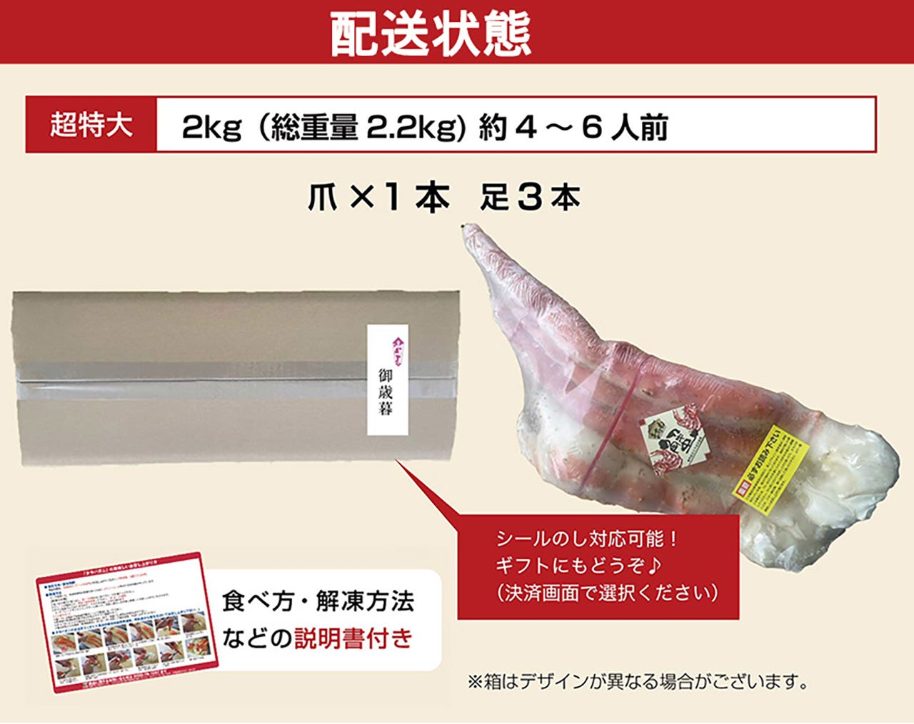 超極太 タラバ蟹 ボイル 2.2kg前後【送料無料/お歳暮/ギフト/たらば/たらば蟹/タラバガニ/蟹足/かに/カニ/ますよね】
