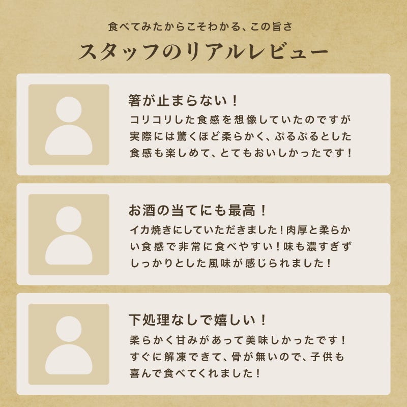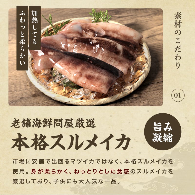 マツイカではなくスルメイカを使用していますので、味も食感も自信あり。
