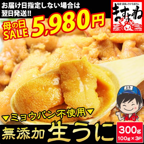 《母の日セール》チリ産最上級Aグレード厳選 ミョウバン不使用 無添加生うに 300g(100g×3p) ブランチング処理【ウニ/雲丹/海鮮丼/寿司/母の日/ギフト/送料無料/ますよね】