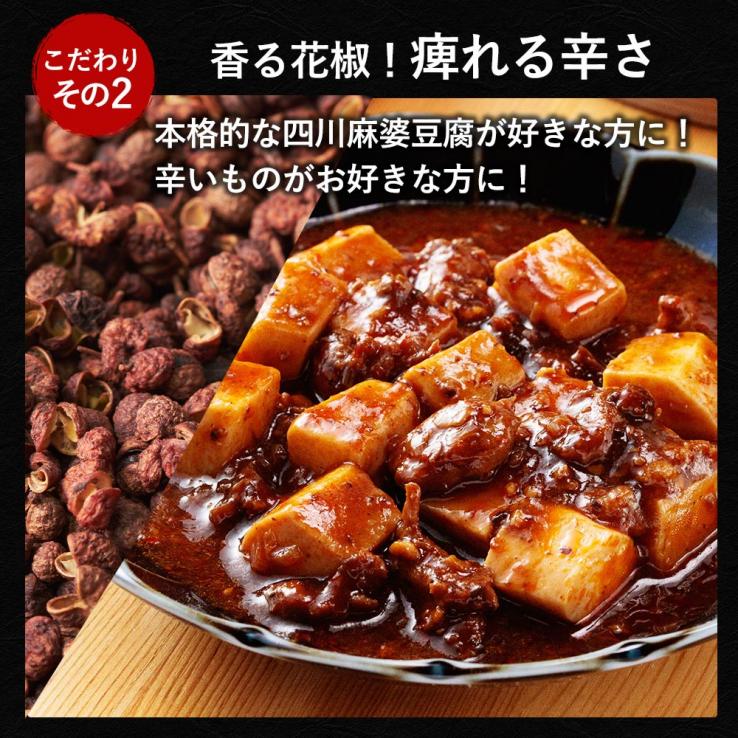 豆腐(国内製造)、豚肉(メキシコ産)、長ねぎ、砂糖、麻辣醤、豆板醤、食用なたね油、チキンエキス、甜麺醤、醤油、みじんニンニク、豆鼓、香味油、オイスターソース、トマトケチャップ、みじん生姜、ごま油、中国醤油、えび醤、香辛料/安定剤(加工でん粉)、増粘剤(加工でん粉)、調味料(アミノ酸等)、乳化剤、豆腐用凝固剤、カラメル色素、(一部に小麦・えび・牛肉・ごま・大豆・鶏肉・豚肉を含む)