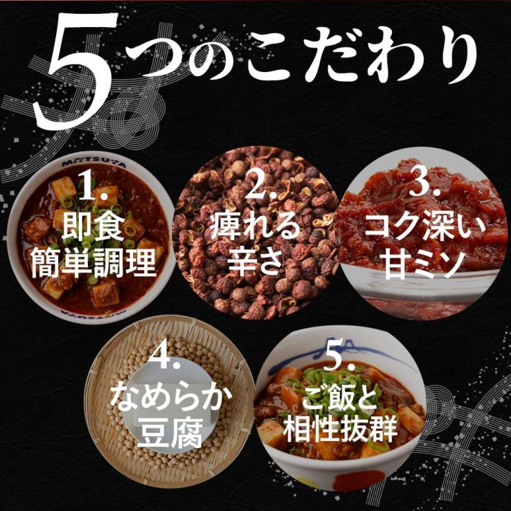 豆腐(国内製造)、豚肉(メキシコ産)、長ねぎ、砂糖、麻辣醤、豆板醤、食用なたね油、チキンエキス、甜麺醤、醤油、みじんニンニク、豆鼓、香味油、オイスターソース、トマトケチャップ、みじん生姜、ごま油、中国醤油、えび醤、香辛料/安定剤(加工でん粉)、増粘剤(加工でん粉)、調味料(アミノ酸等)、乳化剤、豆腐用凝固剤、カラメル色素、(一部に小麦・えび・牛肉・ごま・大豆・鶏肉・豚肉を含む)