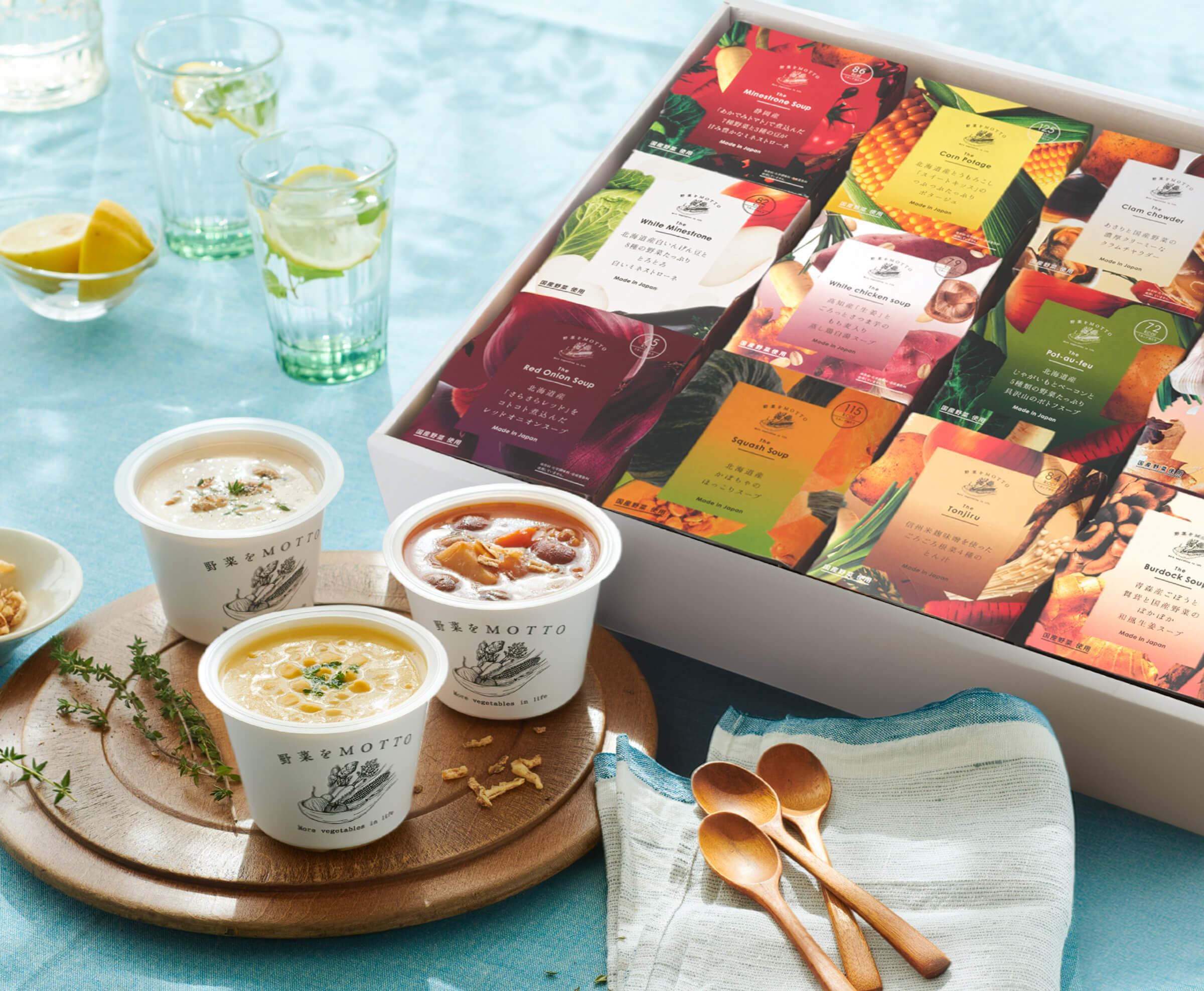 野菜の栄養いっぱいのレンジカップスープセットを思いやりとともに。