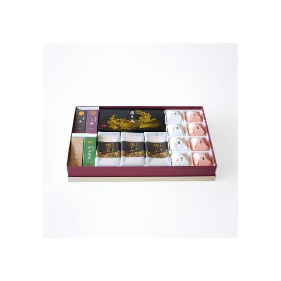 - 長生殿小墨6枚、小型羊羹 粋 4本、千歳8個、城の石3個