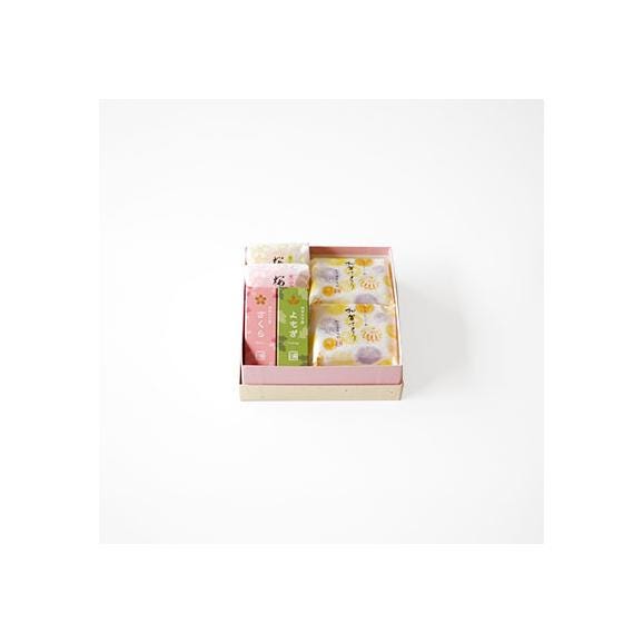 - 【詰合せ内容】 桜もなか 黒小倉餡(桜色皮)1個、 桜もなか 草小倉あん(焦がし皮)1個、 加賀てまり 2個、四季の羊羹粋(さくら)1本、 四季の羊羹粋(よもぎ)1本