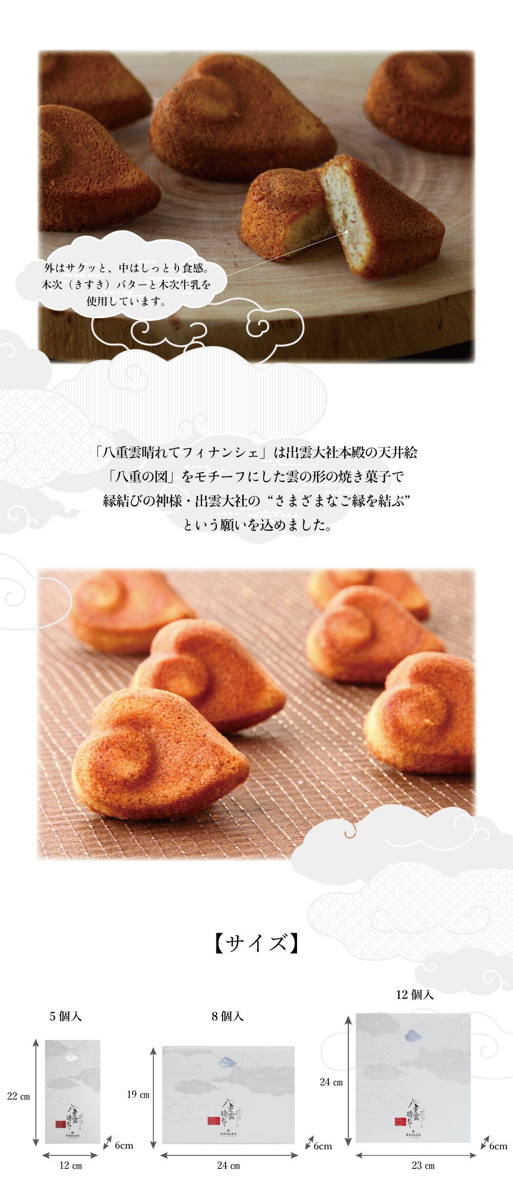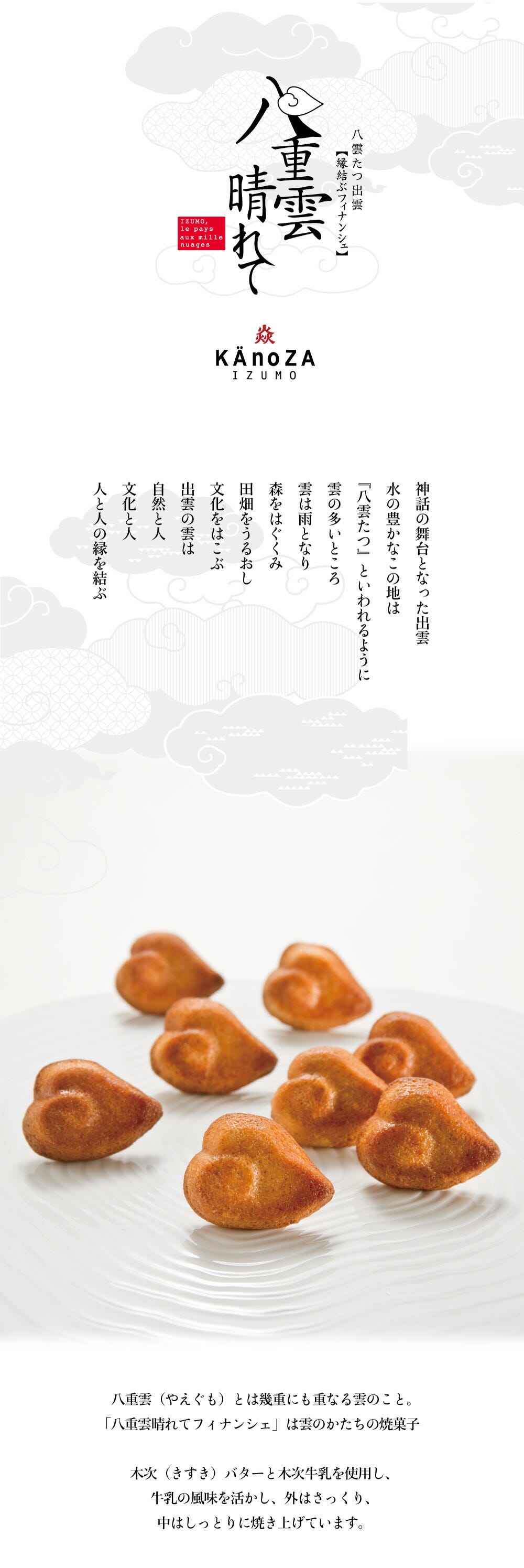 「八重雲晴れてフィナンシェ」は出雲大社本殿の天井絵「八雲の図」をモチーフにした雲のかたちの焼菓子で、縁結びの神様・出雲大社の“さまざまなご縁を結ぶ”という願いを込めました。