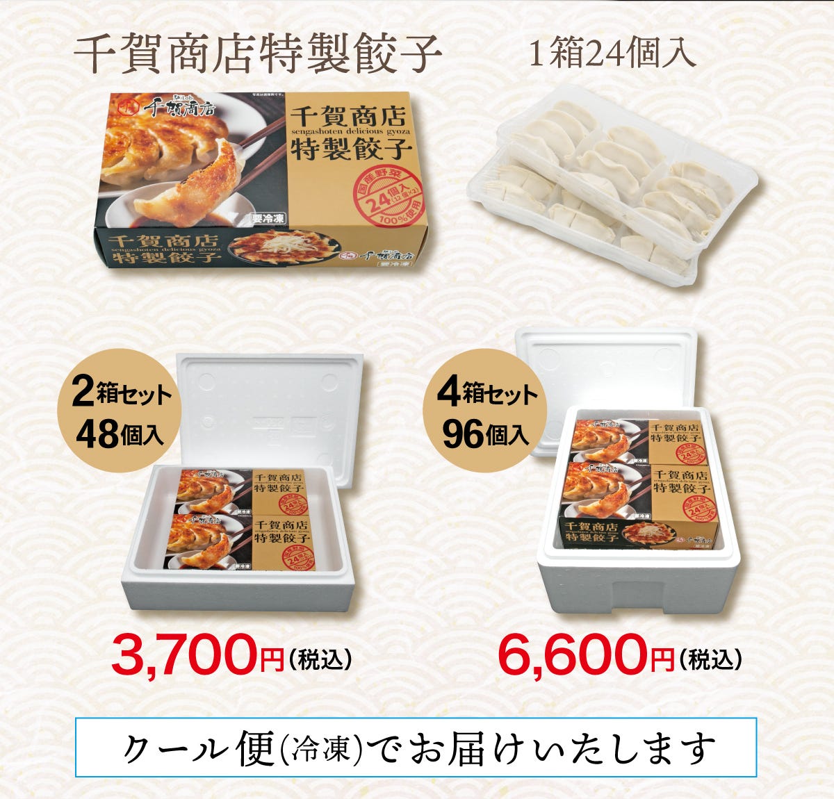 - 1箱あたり餃子24個入(12個×2パック)