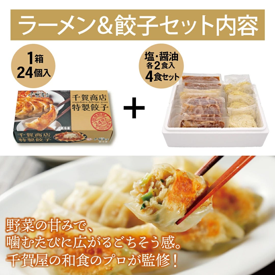 【商品名】千賀商店のおうちラーメン 塩・醤油各2食+特製餃子 1箱(24個入)セット