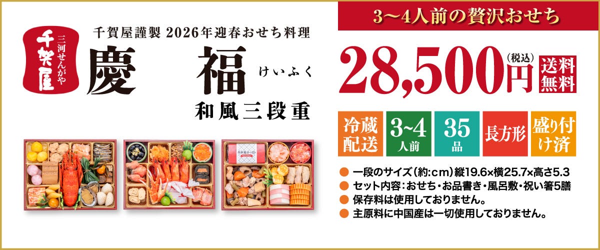 • 【全国送料無料】おせち 3~4人前 三段重 解凍不要 冷蔵 「慶福」千賀屋謹製 2026年 和風 全35品01