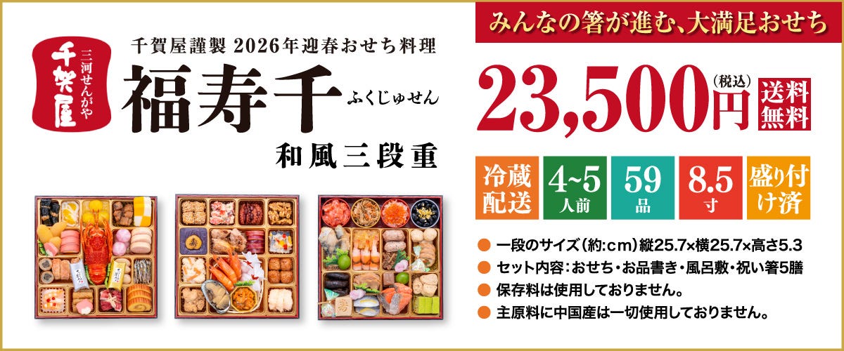 • 【全国送料無料】おせち 4~5人前 三段重 解凍不要 冷蔵「福寿千」千賀屋謹製 2026年 和風 全59品01