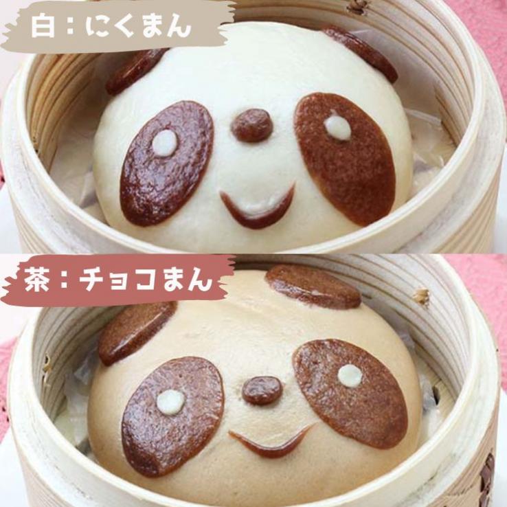 パンダまんの白色は肉まん、茶色はチョコまんです。