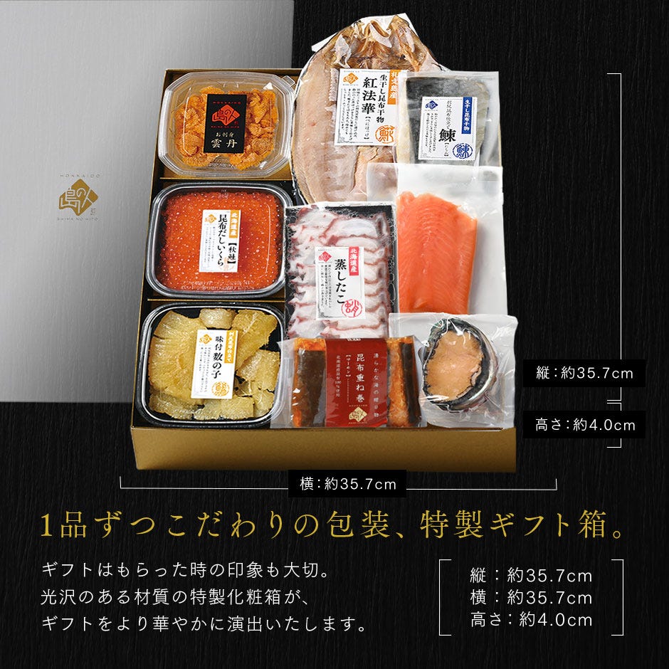 数々の賞を受賞した北海道の海鮮ギフト専門店 島の人から、特別な1日に華を添える海鮮9点入りのギフトセットをご紹介いたします。