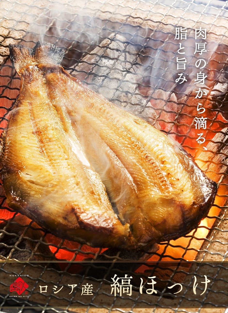 ジューシーな脂のり、大ぶりで身がやわらかな縞ほっけです。