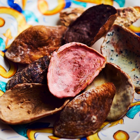 種類(6種×1枚入り):いちご・黒ゴマ・エスプレッソ・リモーネ(レモン)・ブラックチョコ(ピーナッツ入り)・ロココ(シナモン アニス クローブ、くるみ アーモンド入り)