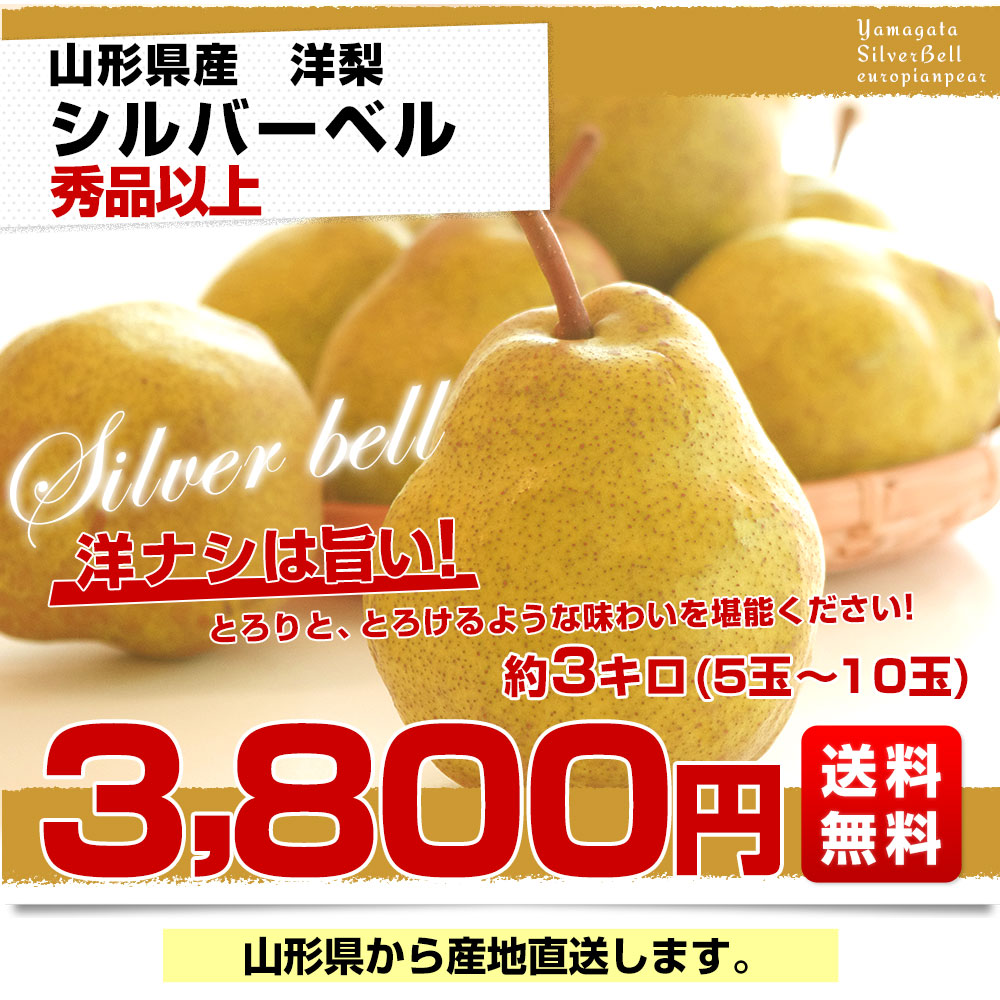 シルバーベルは山形県生まれの西洋梨。果肉はジューシーでなめらかな舌触りが特徴です。糖度が高くてさわやかな酸味があり、この洋梨ならではの甘い香りも持ち風味豊かな味わいがとっても美味しい梨です。