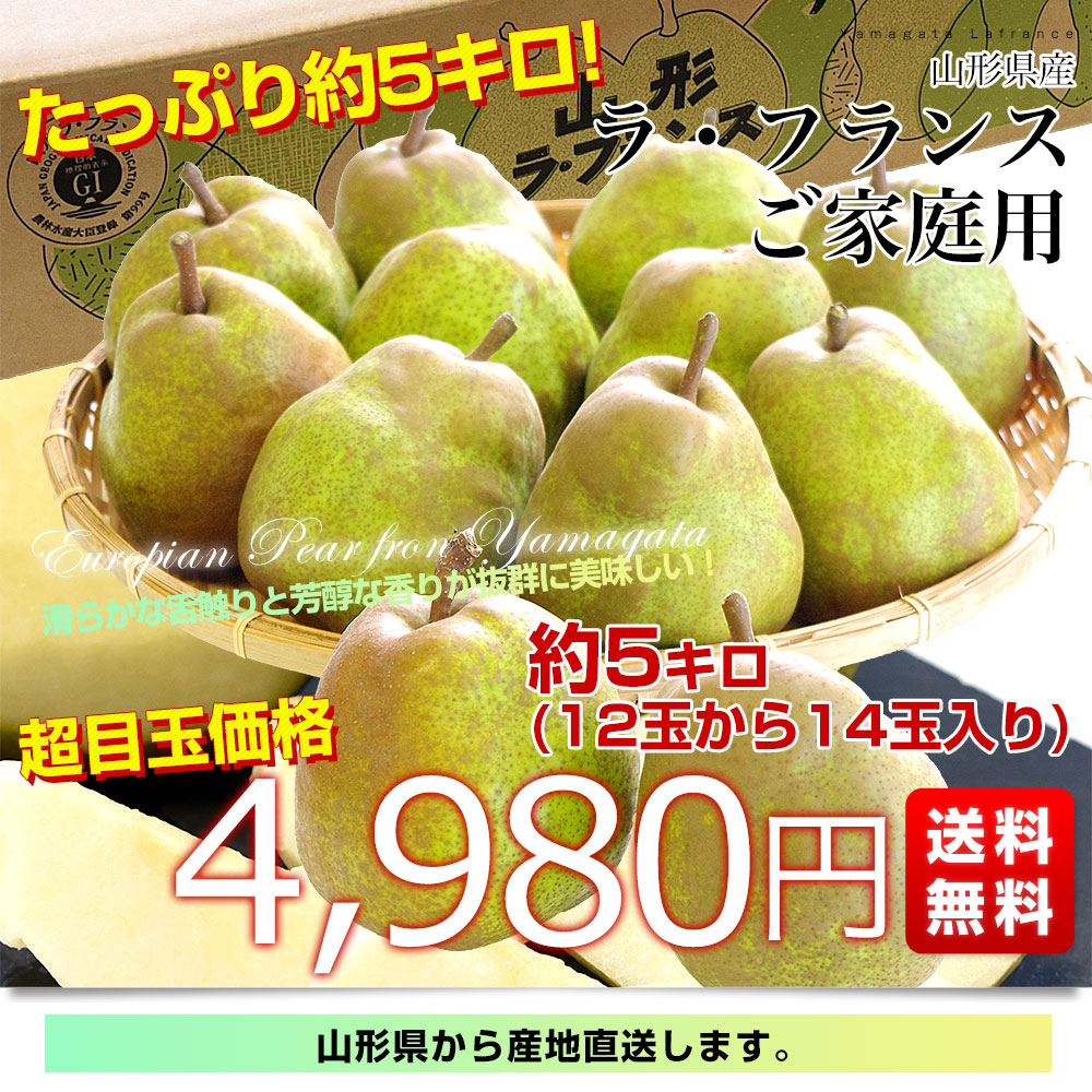 ご家庭用規格!高級洋梨がまさかの価格!果皮に若干の傷などがあるため見栄えはあまりよくありませんが、中身は問題ありません!芳醇な香りと、なめらかでとろりととろける食感!まさにくだものの女王とまで言われるこれが本場の旬の味わい「山形産ラフランス」です。