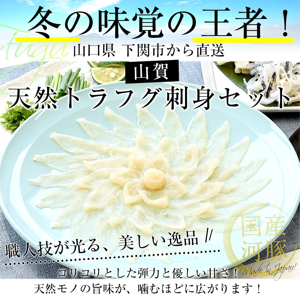 内容量:トラフグ刺身80g、トラフグ皮刺し50g、ポン酢150ml、もみじおろし5g×3個