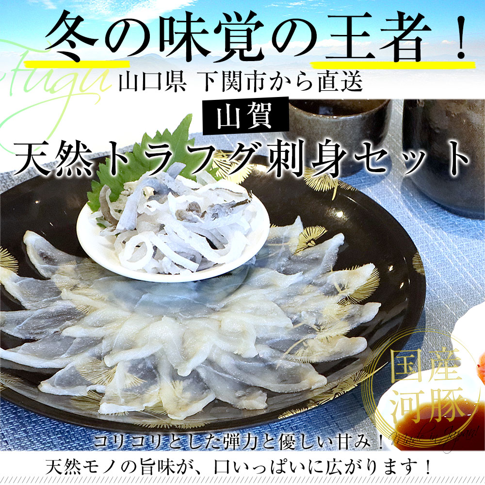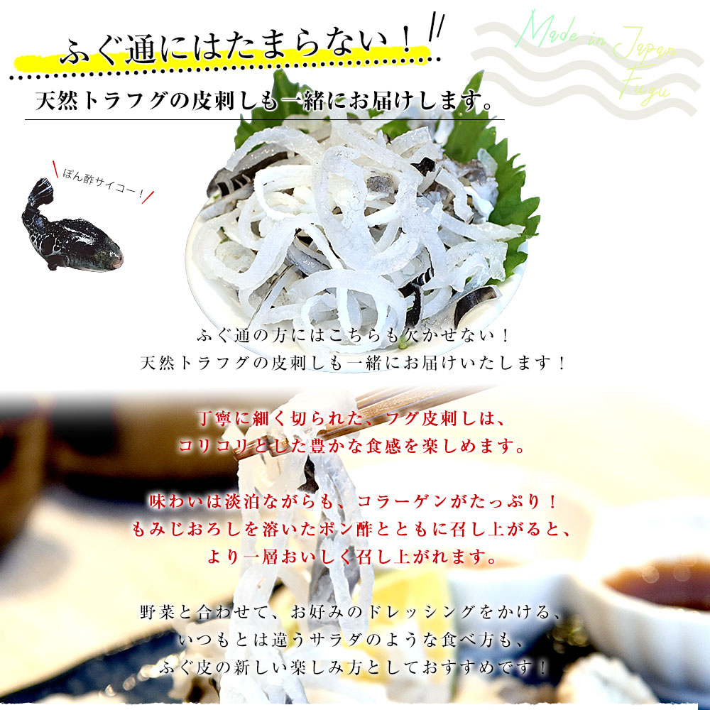 内容量:トラフグ刺身50g、トラフグ皮刺し30g、ポン酢14g×2個、もみじおろし2.5g×2個