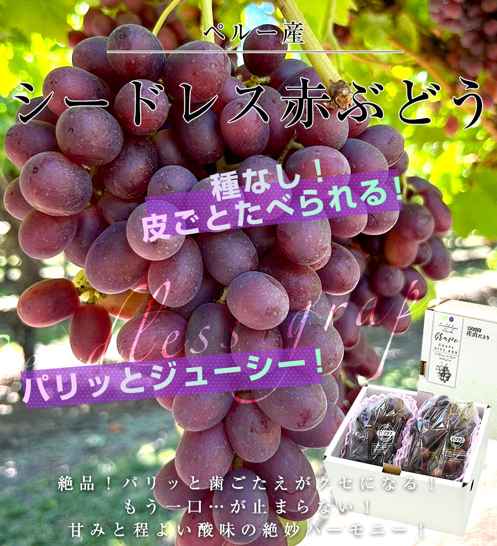 皮ごと・種なし!シードレス赤ぶどう!パリッと食感と上品な甘みが特徴で、スナック感覚で食べられます!その時期に最適な品種を選び、極上のぶどうをお届けしていきます。