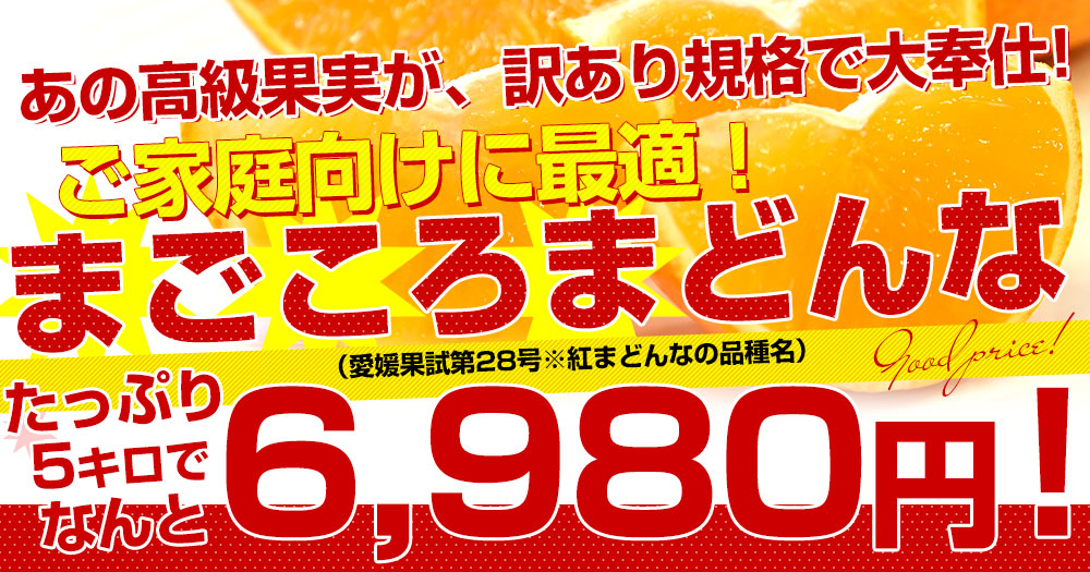 まごころまどんな「正式名称:愛媛果試第28号」は紅まどんなと同一の品種で愛媛県でしか栽培できない希少な品種です。とろけるゼリーのようなぷるぷる食感で、果汁がたっぷり!口いっぱいに爽やかな甘さが心地よく広がります。
