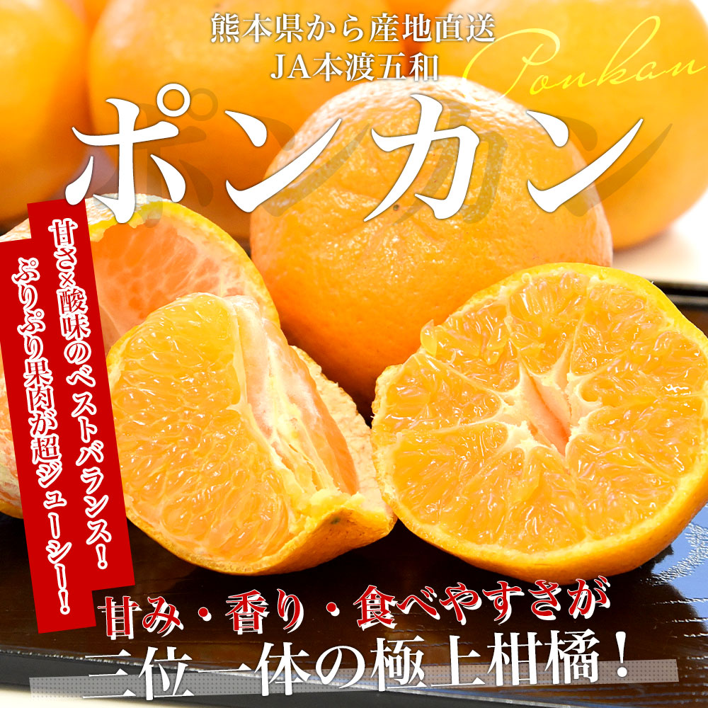 豊かな香りと、濃厚な味わいに包まれる柑橘「ポンカン」。原産地の熊本県JA本渡五和は、海に囲まれた天草市に位置し、温暖な気候と潮風で育てる柑橘の名産地です。簡単に手で皮をむくことができ、1房食べると、オレンジのような香りが広がります。甘さと、それを下支えする酸味のバランスがよく、濃厚な味わいも特徴です。