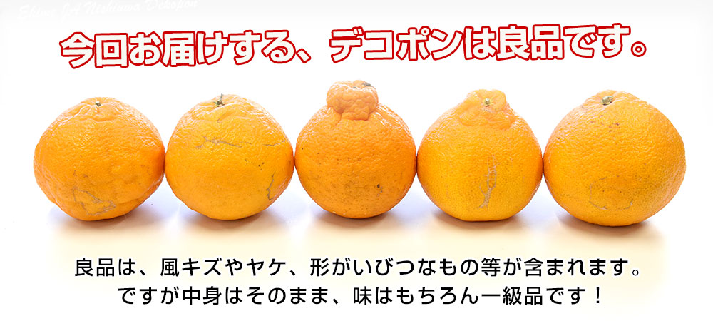 ポンカンと清見を交配してうまれた、デコポン。果汁たっぷりで食べごたえ満点の果実です。良品はキズありや、形がいびつなものもふくまれますが、味はそのまま極上の逸品です! 粒々感豊かでジューシーな果実で、抜群の美味しさを奏で、食べる人を魅了します。お子様から、お年寄りまで、みんな大好きな味わいです。