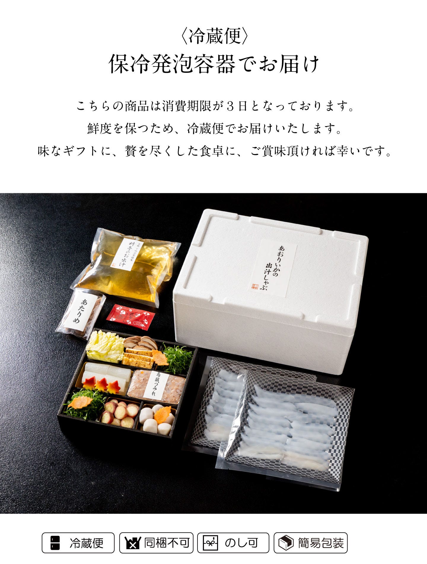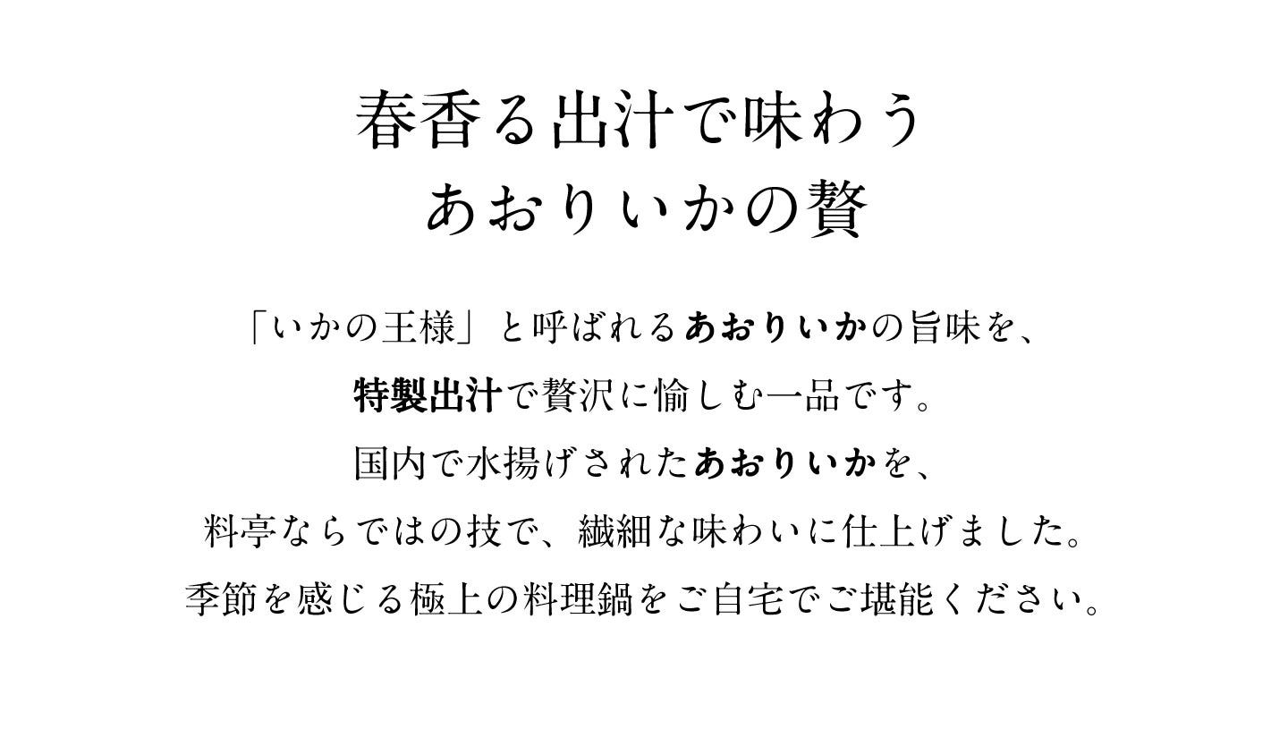 「いかの王様」と呼ばれるあおりいかの旨味を、特製出汁で贅沢に愉しむ一品です。