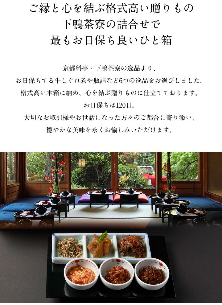 京都料亭・下鴨茶寮の逸品より、お日保ちする牛しぐれ煮や瓶詰など6つの逸品をお選びしました。