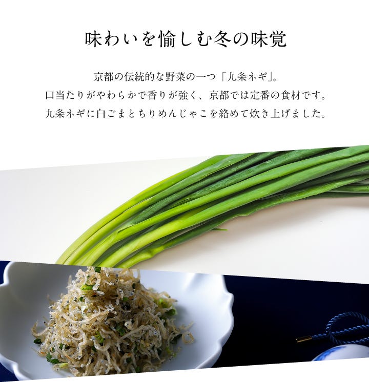 九条ネギに白ごまとちりめんじゃこを絡めて炊き上げました。