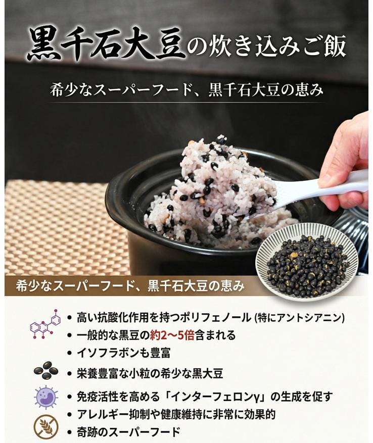 なぜこんなに多いのか? 一説には、黒千石大豆は粒が極小なため、豆の体積に対する「皮」の割合が大きくなります。栄養が集中する皮の部分が多いからこそ、効率よくポリフェノールを摂取できる、というわけです。