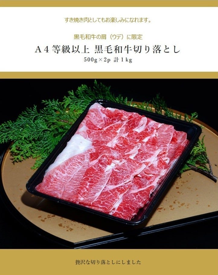 【商品名(内容量)】黒毛和牛 肩切り落とし 1kg(500g×2P)