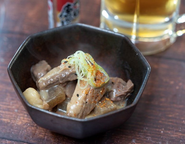 牛すじ肉を味噌やみりんで長時間かけて煮込んだもので、鍋のふちに味噌を土手のように盛ることからその名がつきました。