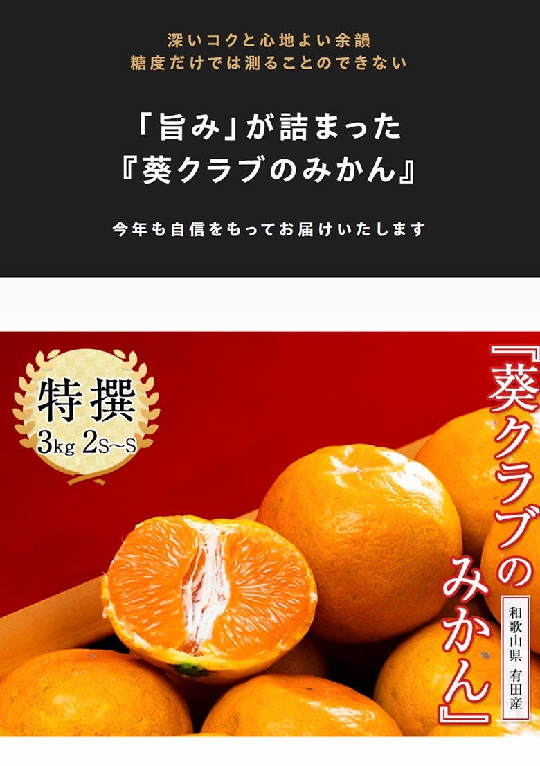 - セット内容:葵クラブ ゆら早生みかん 特選品 2S~S 和歌山県 有田産 風袋込 約3kg 産地箱