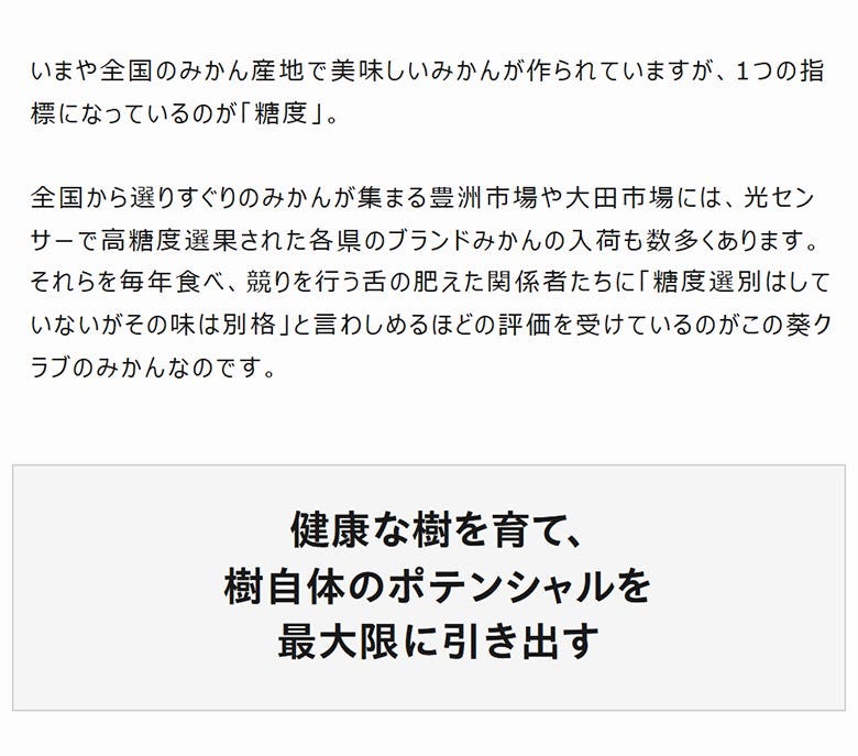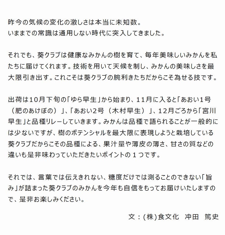 ただ甘いだけではない、深いコクと心地よい余韻を味わえる葵クラブのみかんを11月からお楽しみ下さい。