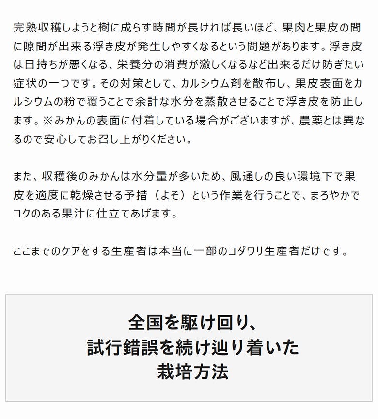 販路が高級果物店などに限定されているため、一般に入手することがほとんど出来ない希少なみかん。
