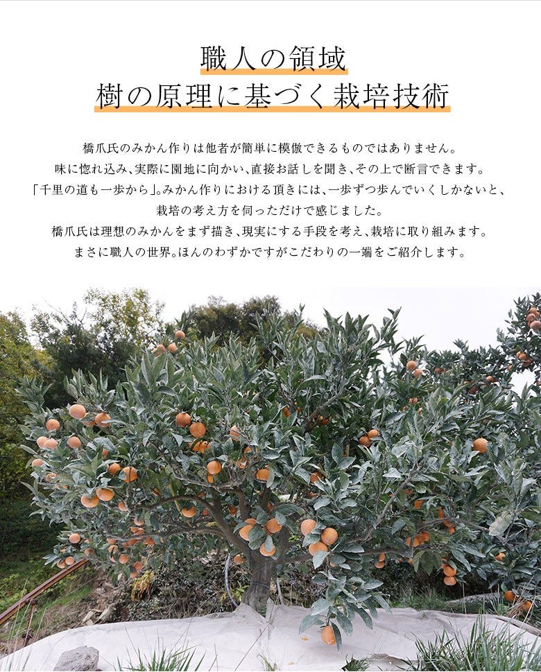 みかんの真の美味しさ・コクを追求するべく、樹の原理に基づいたみかん作りを行っています。