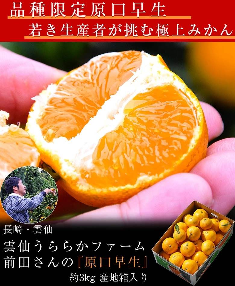 セット内容:【正規品】前田晃佑さんの 原口早生みかん 約3kg (バラ詰め・2S〜M込) 長崎県産 雲仙うららかファー