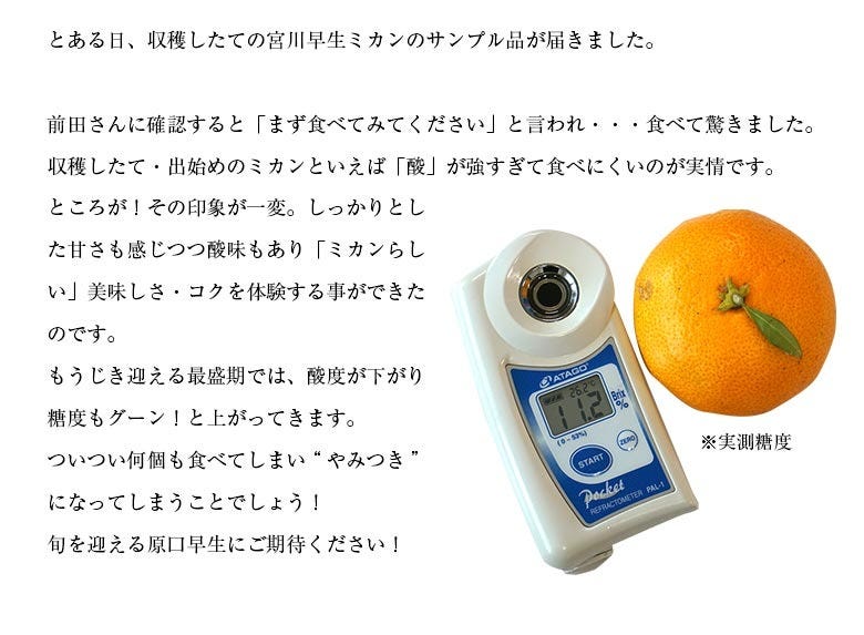 甘さ強く、酸味のバランスも良いのでミカンの美味しさをしっかりと感じられます。