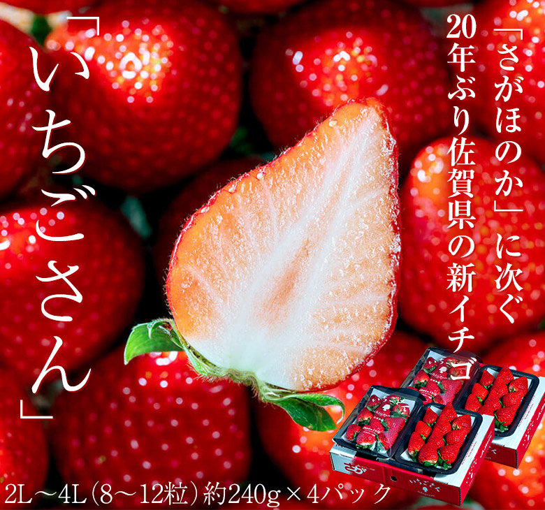 - セット内容:いちごさん 佐賀県産 いちご 2L~4L 約240g×4パック (1Pの目安8~12粒)