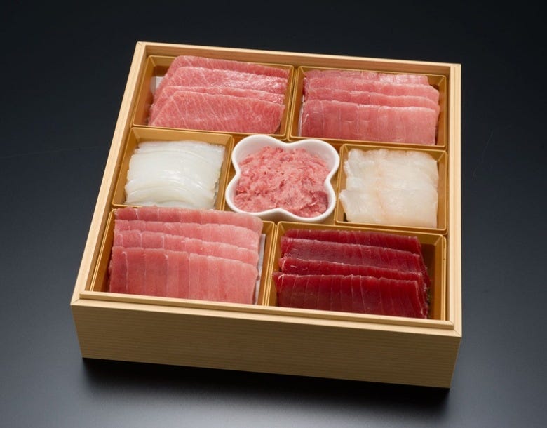 銀座や築地の鮨屋からも一目置かれる日本船「第七光洋丸」が漁獲した、品質の高い天然本まぐろをお重に詰めてお届けします。
