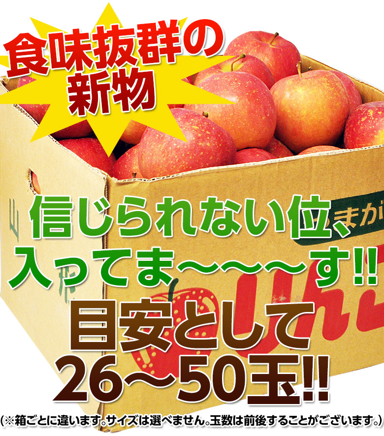 - セット内容:山形産 訳あり 「サンふじりんご」 バラづめ 風袋込 約10kg (目安として26~50玉)