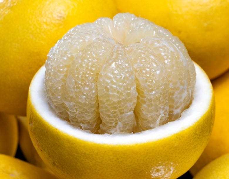 文旦はビタミンCの含有量が柑橘類の中でもトップクラスで、蜂蜜と同じ成分の果糖が多く含まれています。果糖は糖質の中でもっとも小さな分子なので消化吸収が早く、すばやくエネルギーに変えることができます。