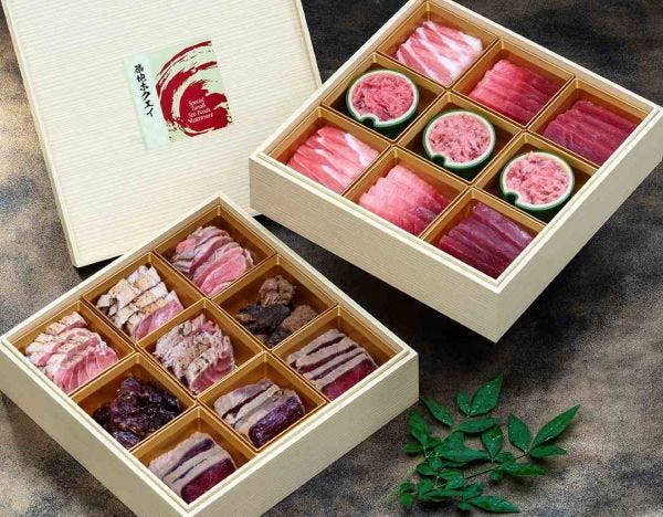 市場のプロが手がけるマグロ尽くしの『豊洲市場のマグロ贅沢重』をご用意しました。本来は特別なギフトとして限られた方々にのみ贈られる非売品。そのため、味わい・見た目ともに妥協のない品質です。