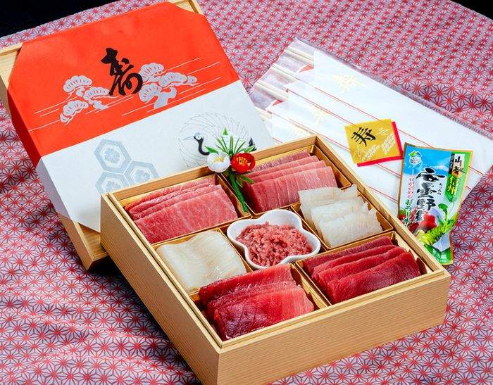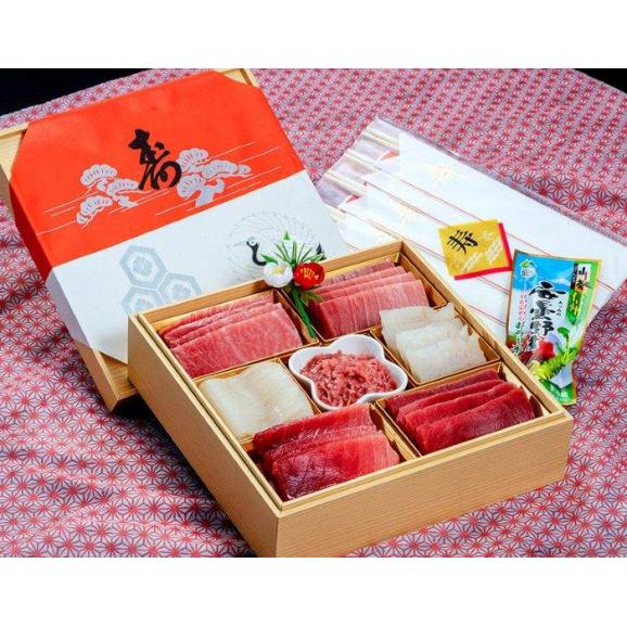 - セット内容:『天然本マグロのお刺身海鮮おせち』一段重 全6品 7寸 築地玉寿司監修