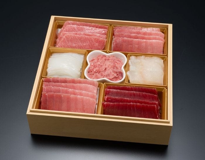 銀座や築地の鮨屋からも一目置かれる日本船「第七光洋丸」が漁獲した、品質の高い天然本まぐろをお重に詰めてお届けします。
